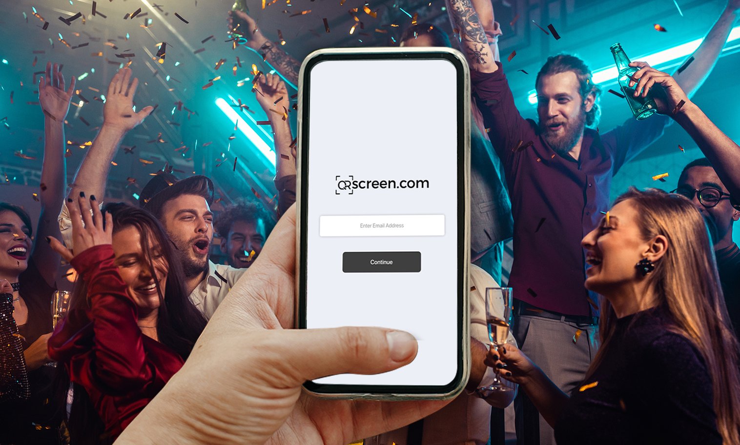Pihak pengguna (penyelenggara acara/event host) membuat akun atau login di platform www.qrscreen.com